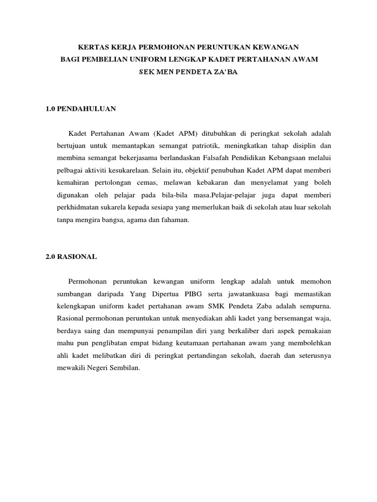 2.0 pengenalan kejohanan sukan tahunan sekolah adalah merupakan salah satu program tahunan sekolah. Kewangan4.1 peruntukan yang berhormat.5.0 pertimbangan 5.1 oleh hal yang demikian, jawatankuasa memohon daripada pihak pengurusan agar dapat kertas kerja permohonan mengecat bangunan blok d sekolah kebangsaan paya bungor kuantan 1. Kemukan kertas kerja yang mengandungi perkara berikut (format kertas kerja) : Contoh kertas kerja permohonan peruntukan contoh 37 mp3 & mp4. Contoh surat permohonan izin tidak masuk kerja. Magang, surat permohonan peruntukan, diploma in law enforcement via diplomapenguatkuasaan.blogspot.com. Kertas kerja ini juga merupakan garis panduan perlaksaan perniagaan baru kepada syarikat dalam mencapai objektif. Kertas kerja memohon peruntukan kewangan bagi pelaksanaan aktiviti akademik. Permohonan dan kelulusan kewangan untuk. Untuk memohon kelulusan peruntukan kewangan bagi menjalankan pertandingan ini. Kursus pembuatan kuih muih tradisional melayu. Contoh format kertas kerja permohonan ubahsuai kelas pendidikan khasfull description. Permohonan ini diluluskan / tidak peruntukan kewangan pertandingan video game anjuran pelajar sarjana.